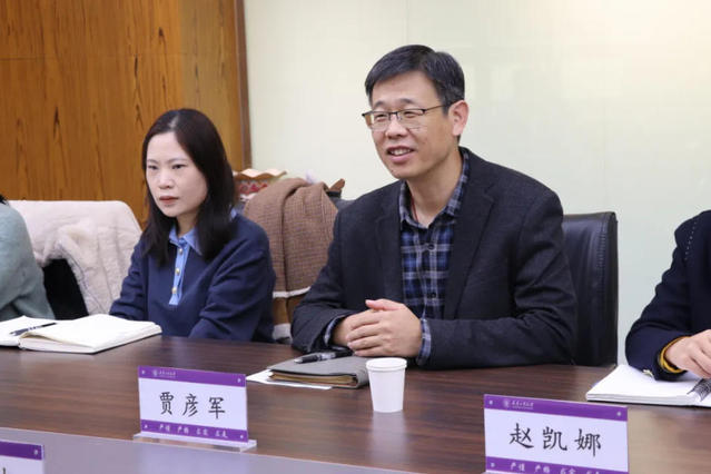 贾彦军副书记代表学院对东华大学同仁的到访表示热烈欢迎,并系统介绍了学院在学科布局、师资建设、学生工作等方面的基本情况,重点阐述了学院依托工科背景、推动艺术与科技融合发展的办学特色。