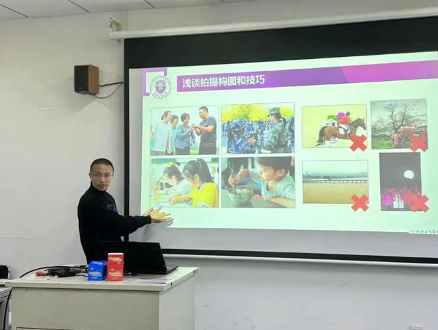 培训会上,陈亚桥老师围绕文案创作、摄影技巧及新媒体运营等实务技能展开系统讲解。他结合典型案例,通过深入浅出的方式,使同学们对新闻宣传工作的方法与路径形成了更清晰的认识。