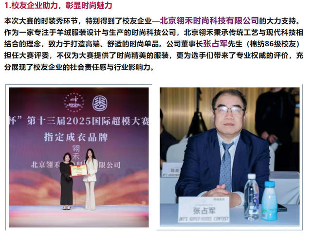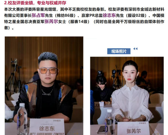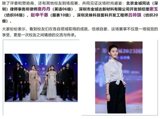 作为本次大赛的执行主席,我院校友、亚美(深圳)国际文化传媒有限公司总经理李沅桐女士(服表10级)全程参与并主导了赛事的组织与策划工作;亚美(深圳)国际文化传媒有限公司合伙人金佳玉女士(服表10级)负责模特的组织和秀场安排。
