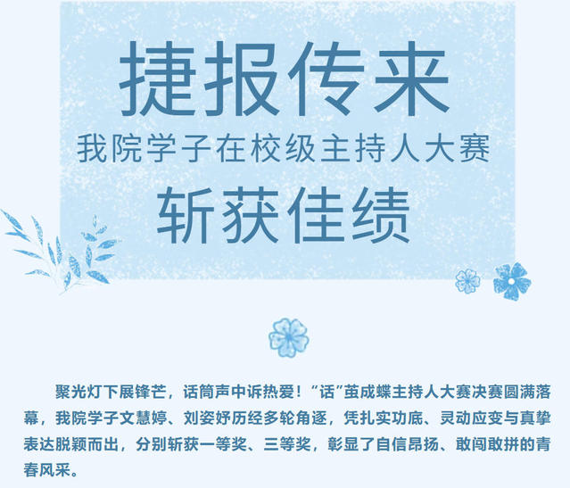 语言有力量,青春正昂扬!此次主持人大赛,我院学子用实力证明了自己,用热爱点亮了舞台,为学院赢得了荣誉与掌声!